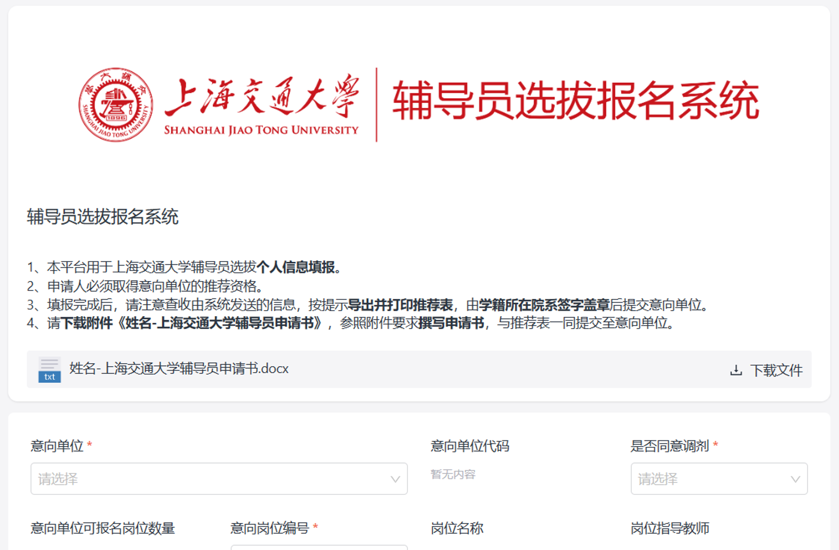 (3)辅导员申请书(.docx格式,一页以内,电子版无需签章)。